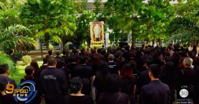 บริเวณหน้าศาลากลางจังหวัดตรัง ผู้ว่าราชการจังหวัดพร้อมด้วยนายชวน หลีกภัย อดีตนายกรัฐมนตรี รวมทั้งพสกนิกรชาวตรังเกือบ 100,000 คน แต่งชุดดำถวายอาลัย