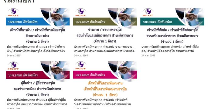 อสมท เปิดรับสมัครบุคคลเพื่อสอบคัดเลือกเข้าปฏิบัติงาน ระดับเจ้าหน้าที่/เจ้าหน้าที่อาวุโส (6 อัตรา)