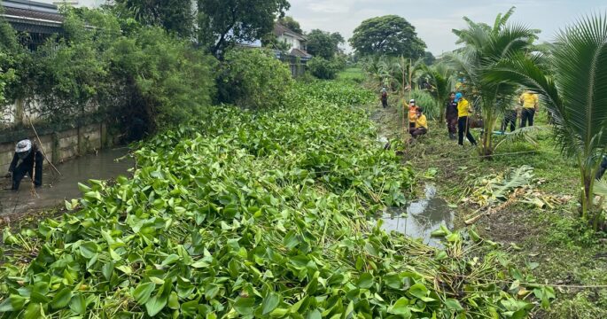 เริ่มแล้ว หลัง กทม.ประสานทหารร่วมกำจัดผักตบชวาขวางทางน้ำ พบในคลองสาขาเขตบางเขนหลายจุดผักตบหนาแน่นยาวนับกิโลเมตร เร่งกำจัดรับมือฝนหนัก