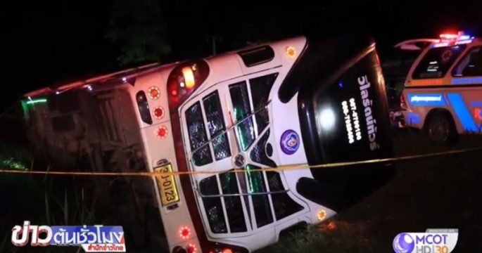 คนขับรถทัวร์วูบหลับใน รถตกร่องกลางถนน บาดเจ็บ 19