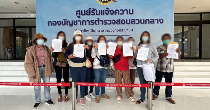 กลุ่มผู้เสียหาย 7 คน เข้าร้องทุกข์กับตำรวจกองปราบปราม หลังถูกหลอกร่วมลงทุนซื้อโควตาลอตเตอรี่ พร้อมนำหลักฐานการโอนเงินและรูปถ่ายลอตเตอรี่ที่ได้ มามอบให้ตำรวจ เชื่อยังมีผู้เสียหายอีกจำนวนมากที่ไม่กล้ามาแจ้งความ ความเสียหายรวมกว่า 100 ล้านบาท