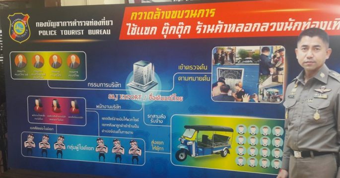 กรุงเทพฯ 2 ก.ค.- ตำรวจท่องเที่ยว จับกุมกลุ่มหลอกลวงนักท่องเที่ยวตามหน้าวัด-วัง ดำเนินคดีข้อหาหนัก อั้งยี่-ซ่องโจร พร้อมขอคำสั่งศาลเข้าพื้นที่-ประกอบธุรกิจเดิม ป้องกันก่อเหตุซ้ำซาก พล.ต.ต.สุรเชษฐ์ หักพาล รองผู้บัญชาการตำรวจท่องเที่ยว แถลงผลจับกุมผู้ต้องหาหลอกลวงพานักท่องเที่ยวบริเวณรอบพระบรมมหาราชวังโดยจับกุมผู้ต้องหาได้รวม8 คน โดยผู้ต้องหากลุ่มนี้จะแบ่งหน้าที่กันทำงาน กลุ่มแรกจะคอยไซด์แขกหรือเชียร์นักท่องเที่ยวที่อยู่ตามสถานที่ท่องเที่ยวสำคัญ เช่น รอบพระบรมมหาราชวัง อ้างว่า วัด-วัง ปิด และจูงใจให้ไปซื้อสูทและจิวเวอรี่จากร้านค้าที่ร่วมขบวนการ ก่อนจะนำนักท่องเที่ยวส่งต่อให้ผู้ต้องหากลุ่มที่ 2 ที่เป็นคนขับรถตุ้กๆและแทกซี่ ให้กับร้านค้าที่จะให้ส่วนแบ่งร้อยละ20 จากราคาการขาย จากการสืบสวนขยายผลพบว่า ผู้ต้องหาที่เป็นคนไซด์แขก / คนขับรถตุ๊กตุ๊กและ ร้านค้าร่วมขบวนการมีทั้งร้านทัวร์ (Travel scam ) ได้แก่บริษัทรอยัล แทรเวลลิ่ง จำกัด ดำเนินคดี ตามพ.ร.บ.ธุรกิจนำเที่ยวและมัคคุเทศก์ มาตรา 34 ประกอบธุรกิจนำเที่ยวไม่จัดให้มีการประกันภัยสำหรับอุบัติเหตุให้แก่นักท่องเที่ยว มัคคุเทศก์ และผู้เที่ยว / ประเภท ร้านตัดสูท (Tailor scam) ได้แก่ เทเวศร์แฟชั่น รามแฟชั่นอินเตอร์เนชั่นแนล เจมส์แฟชั่น วาสนา […]