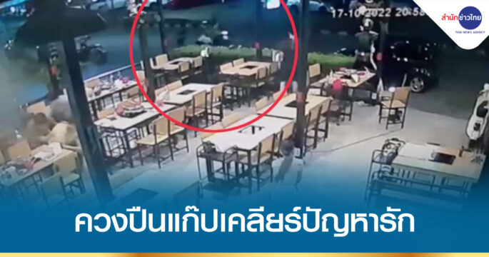 หนุ่มวัย 25 ปี ควงปืนแก๊ปเด็กเล่นเคลียร์ปัญหารัก แต่กระสุนเกิดลั่น ทำเอาชาวบ้านในร้านชาบูวิ่งหนีตาย สุดท้ายถูกกลุ่มวัยรุ่นรุมทำร้ายบาดเจ็บ