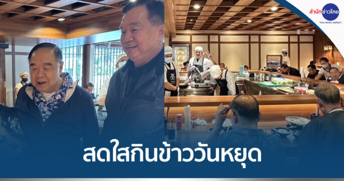“ลุงป้อม” สดใส มีความสุข กินข้าววันหยุดในร้านชาบู