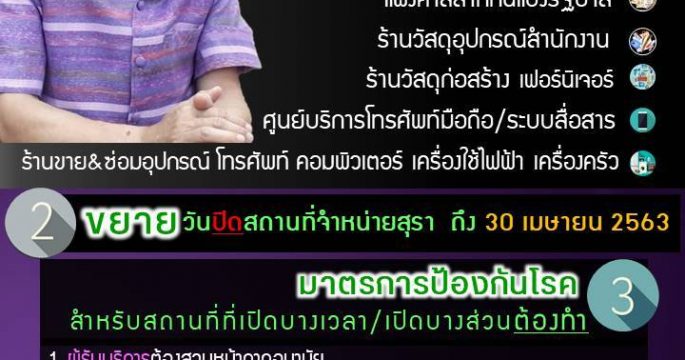 จังหวัดนนทบุรี ผ่อนปรน เปิดร้านตัดผม ร้านซ่อมโทรศัพท์มือถือ และสถานที่จำเป็นต่อการดำรงชีวิต ตั้งแต่ 15 เม.ย. โดยต้องทำตามมาตราการป้องกันโรค สวมหน้ากากอนามัย พร้อมขยายวันปิดสถานที่จำหน่ายสุราถึง 30 เม.ย.นี้