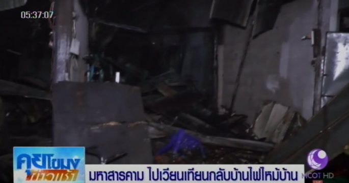 เจ้าของไปเวียนเทียนกลับมาแทบเป็นลม พบเพลิงไหม้ร้านตัดเสื้อและร้านรับทำเบาะวอดทั้งหลัง เบื้องต้นคาดว่าเกิดจากไฟฟ้าลัดวงจร