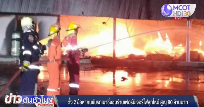 ชายวัย 26 ปี มีอาการมึนเมาขับรถยนต์เสียหลักพุ่งชนร้านเฟอร์นิเจอร์ ใน อ.หาดใหญ่ จนเกิดไฟลุกไหม้รถยนต์และลุกลามเผาไหม้ทั้งร้าน รวมมูลค่าความเสียหายกว่า 80 ล้านบาท