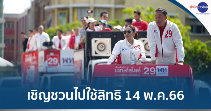 “แพทองธาร-เศรษฐา” นำเพื่อไทย ปล่อยขบวนรถขอคะแนนเสียงครั้งสุดท้าย รณรงค์เชิญชวนประชาชนไปใช้สิทธิเลือกตั้ง 14 พ.ค.66