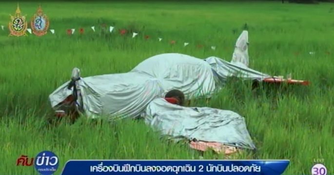 เครื่องฝึกบินวิทยาลัยการบินนานาชาติ ม.นครพนม ลงจอดฉุกเฉิน บริเวณทุ่งนา เหตุเครื่องยนต์ขัดข้อง 2 นักบิน ปลอดภัย