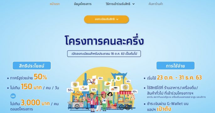 โครงการคนละครึ่งจะเปิดลงทะเบียนในวันพุธที่ 11 พฤศจิกายน 2563