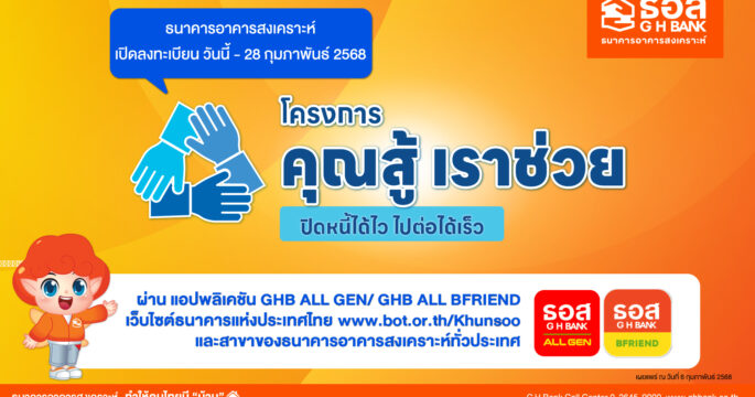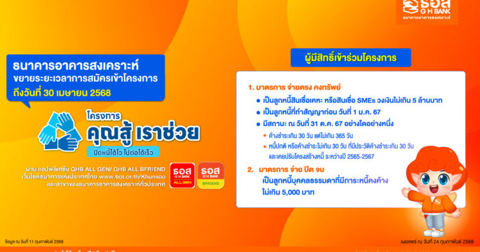 ธอส.ขยายเวลาลงทะเบียน “โครงการคุณสู้ เราช่วย” ถึงวันที่ 30 เมษายน 2568