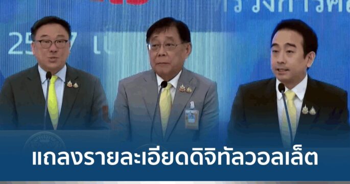ก.คลัง แถลงรายละเอียดโครงการเติมเงิน 10,000 บาท ผ่านดิจิทัลวอลเล็ต กลุ่มผู้มีสมาร์ทโฟน เริ่มลงทะเบียน 1 ส.ค.-15 ก.ย. ผ่านแอปฯ “ทางรัฐ” ส่วนกลุ่มไม่มีสมาร์ทโฟน ลงทะเบียน 16 ก.ย.-15 ต.ค. ใช้จ่ายผ่านบัตรประชาชน
