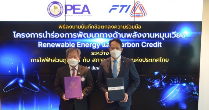 PEA ร่วมลงนาม สภาอุตฯ ศึกษาโครงการนำร่องการพัฒนาทางด้านพลังงานหมุนเวียน (Renewable Energy) และ Carbon Credit เพื่อให้สามารถใช้เป็นต้นแบบตามแนวทางการพัฒนาเทคโนโลยีและการประยุกต์ใช้พลังงานทดแทน