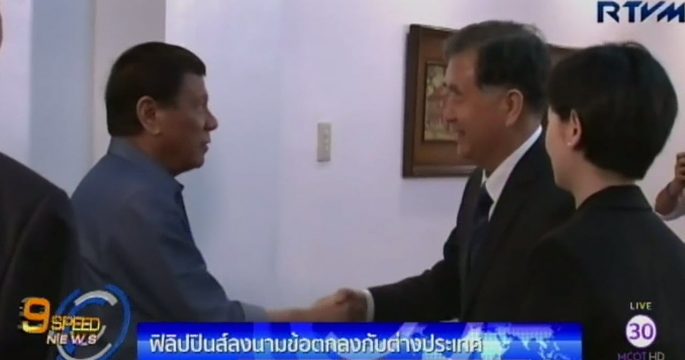 ประธานาธิบดีโรดริโก ดูเตอร์เต ของฟิลิปปินส์ และรองนายกรัฐมนตรีหวัง หยาง ของจีน ร่วมลงนามข้อตกลงว่าด้วยการค้าและการลงทุนระหว่างกันใน 6 ปี
