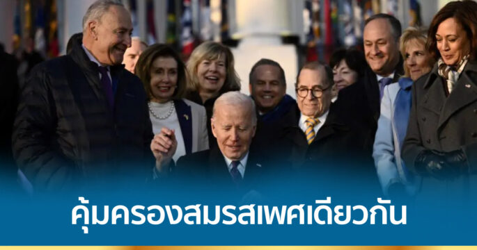 วอชิงตัน 14 ธ.ค.- ประธานาธิบดีโจ ไบเดนของสหรัฐลงนามร่างกฎหมายให้ความคุ้มครองระดับรัฐบาลกลางต่อการสมรสของคนเพศเดียวกัน โดยมีแขกของทำเนียบขาวจำนวนมากมาเป็นสักขีพยานการลงนามร่างกฎหมายสำคัญนี้ ประธานาธิบดีไบเดนประกาศตัวสนับสนุนการครองคู่ของคนเพศเดียวกันตั้งแต่เมื่อครั้งดำรงตำแหน่งรองประธานาธิบดี ก่อนที่ศาลฎีกาสหรัฐมีคำตัดสินในปี 2558 ให้การแต่งงานของคนเพศเดียวกันเป็นสิ่งถูกกฎหมาย เขากล่าวขณะลงนามร่างกฎหมายที่ทำเนียบขาวเมื่อบ่ายวันอังคารตามเวลาท้องถิ่นว่า กฎหมายนี้คือชัยชนะด้านสิทธิ ชาวอเมริกันได้เดินหน้าก้าวสำคัญที่มุ่งไปสู่ความเสมอภาค เสรีภาพ และความยุติธรรมที่ไม่ใช่สำหรับบางคน แต่สำหรับทุกคน ผู้นำสหรัฐได้พูดคุยกับแขกที่มาร่วมเป็นสักขีพยาน ซึ่งมีทั้งสมาชิกสภาพรรคเดโมแครต พรรครีพับลิกัน ผู้สนับสนุนและโจทก์ในคดีสมรสเท่าเทียมจากทั่วประเทศ โดยมีเสียงเพลง Born This Way ของเลดี้ กาก้าดังกระหึ่มในพิธีลงนาม ร่างกฎหมายเคารพการแต่งงาน (Respect for Marriage) ผ่านความเห็นชอบจากรัฐสภาครั้งสุดท้ายเมื่อสัปดาห์แล้ว สมาชิกสภาทั้ง 2 พรรคร่วมใจกันผลักดันเพราะเกรงว่าจะมีการเคลื่อนไหวเพื่อจำกัดสิทธิการแต่งงานของคนเพศเดียวกัน หลังจากศาลฎีกาที่ขณะนี้มีผู้พิพากษาสายอนุรักษ์นิยมครองเสียงข้างมากยกเลิกสิทธิตามรัฐธรรมนูญในการทำแท้งเมื่อเดือนมิถุนายนปีนี้ กฎหมายนี้ไม่ได้กำหนดให้รัฐบาลระดับรัฐต้องประกาศให้การแต่งงานของคนเพศเดียวกันเป็นเรื่องถูกกฎหมาย แต่ต้องยอมรับการแต่งงานใด ๆ ก็ตามที่ถูกกฎหมายในรัฐที่การแต่งงานเกิดขึ้น โดยไม่คำนึงถึงเพศ เชื้อชาติ ชาติพันธุ์ หรือประเทศที่ถือกำเนิด และได้ยกเลิกกฎหมายเดิมที่นิยามการแต่งงานว่าหมายถึงการครองคู่ระหว่างชายกับหญิง.-สำนักข่าวไทย