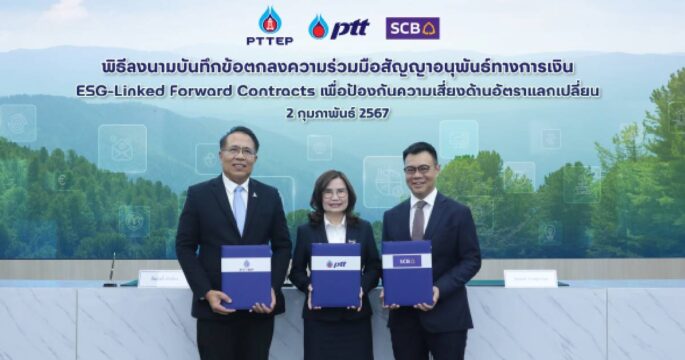 ปตท.-ปตท.สผ.-จับมือธนาคารไทยพาณิชย์ ลงนามความร่วมมือพัฒนานวัตกรรมสัญญาอนุพันธ์ทางการเงิน ESG-Linked Forward Contracts ป้องกันความเสี่ยงด้านอัตราแลกเปลี่ยนให้กับธุรกรรมการซื้อขายก๊าซฯ