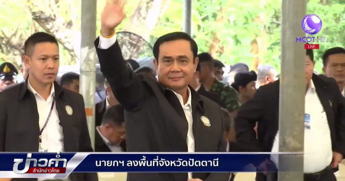 ตลอดวันนี้ นายกรัฐมนตรีลงพื้นที่ จ.ปัตตานี ติดตามความคืบหน้าการแก้ไขปัญหาความไม่สงบและการพัฒนาเศรษฐกิจตามนโยบาย สามเหลี่ยมมั่นคง มั่งคั่ง ยั่งยืน ก่อนที่วันพรุ่งนี้จะเป็นประธานการประชุมคณะรัฐมนตรีสัญจรที่ จ.สงขลา