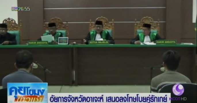 อัยการจังหวัดอาเจะห์ของอินโดนีเซีย เสนอให้ลงโทษด้วยการโบยชาย 2 คน ถึง 80 ครั้ง ฐานมีพฤติกรรมรักร่วมเพศ ซึ่งถือเป็นการละเมิดจารีตประเพณีและผิดกฎหมายอิสลาม