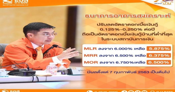 ธอส.ลดดอกเบี้ยเงินกู้ 0.125 – 0.250% ต่อปี ต่ำสุดในระบบสถาบันการเงิน มีผล 7 ก.พ.นี้