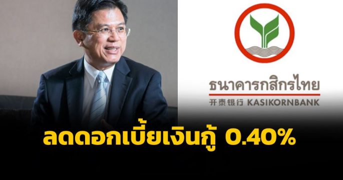 กสิกรไทยนำร่อง ลดดอกเบี้ยเงินกู้ทั้ง MLR, MOR และ MRR 0.40% สนองมาตรการภาครัฐทันที มีผล 10 เม.ย.นี้