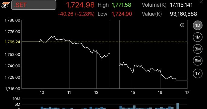 หุ้นไทยร่วง 40.26 จุด กลุ่มแบงก์เจอแรงขายหนัก หวั่นกำไรวูบจากยกเลิกเก็บค่าธรรมเนียมออนไลน์-แรงกดดันลดดอกเบี้ย