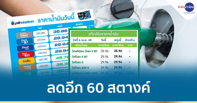 ผู้ค้าแจ้งปรับลดราคาน้ำมันทุกชนิด 60 สตางค์/ลิตร ส่วนกลุ่มดีเซลคงเดิม มีผลพรุ่งนี้