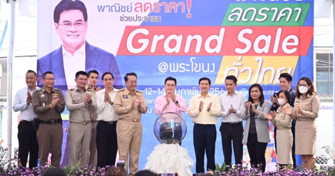 กรุงเทพฯ 13 ก.พ.-รัฐมนตรีพาณิชย์ย้ำกว่า 2 ปีโครงการพาณิชย์…ลดราคา! Grand Sale ทั่วไทยสามารถลดค่าครองชีพให้กับพี่น้องประชาชนทั้งประเทศ ประมาณกว่า 16,500 ล้านบาท ประกาศโครงการดีๆๆเช่นนี้จะดำเนินต่อไปแม้จะใกล้ช่วงเลือกตั้ง พร้อมเปิดจดจำหน่ายแถวพระโขนงนำสินค้าราคาถูกกว่าร่วม 1,000 รายการมาจำหน่ายแถมลดสูงสุด 75% จัดถึงพรุ่งนี้อีก 1 วัน