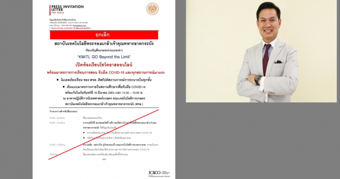 สจล.ยุติการเรียนการสอนแบบปกติในห้องเรียน เปลี่ยนเป็นการเรียนการสอนทางออนไลน์ ลดความเสี่ยงจากสถานการณ์โควิด-19