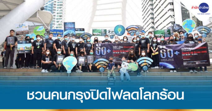 กทม.ชวนคนกรุงร่วมกิจกรรม “ปิดไฟ 1 ชั่วโมง เพื่อลดโลกร้อน (60+ Earth Hour 2022)” พร้อมกับเมืองต่างๆ ทั่วโลก ในวันเสาร์ที่ 26 มี.ค.นี้ ตั้งแต่เวลา 20.30-21.30 น.