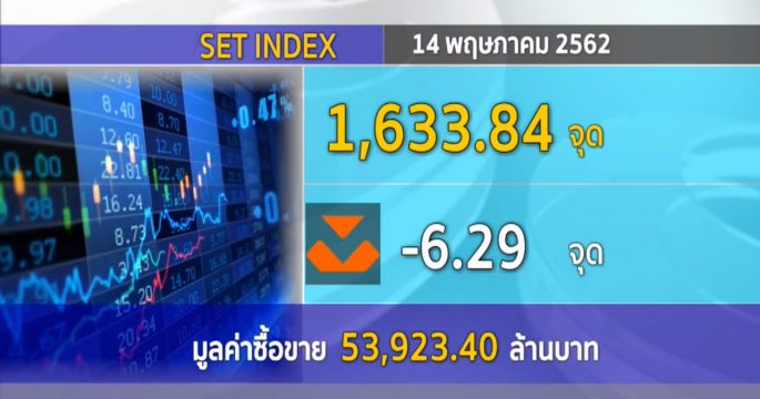 หุ้นไทยลบ 6.29 จุด ทิศทางเดียวกับตลาดภูมิภาค กังวลสงครามการค้า-แรงกดดันผลประกอบการต่ำคาด ดัชนีตลาดหลักทรัพย์ฯ ปิดที่ระดับ 1,633.84 จุด ลดลง 6.29 จุด