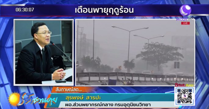 กรมอุตุฯ เตือนไทยตอนบนยังมีพายุฤดูร้อน ภาคอีสานตอนล่าง ภาคเหนือ ภาคกลาง ภาคตะวันออก และภาคใต้ รวมทั้ง กทม.-ปริมณฑล มีพายุฝนฟ้าคะนอง ลมกระโชกแรง และลูกเห็บตกบางพื้นที่