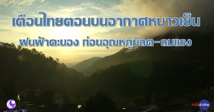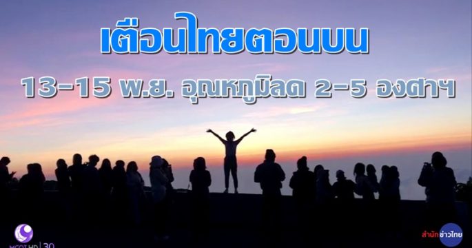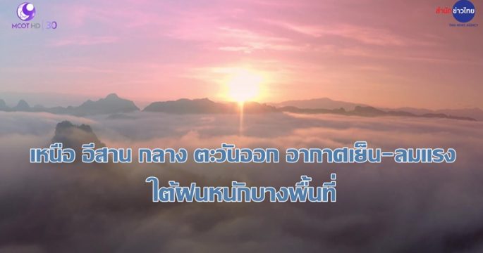 กรมอุตุฯ พยากรณ์อากาศ ไทยตอนบนอากาศหนาวเย็นกับมีลมแรง บริเวณพื้นราบภาคเหนือและอีสานอุณหภูมิต่ำสุด 5-14 องศาฯ ยอดดอยและยอดภูอากาศหนาวจัด-มีน้ำค้างแข็งบางพื้นที่ ส่วนภาคกลาง ตะวันออก รวมทั้ง กทม.-ปริมณฑล อุณหภูมิต่ำสุด 13-20 องศาฯ