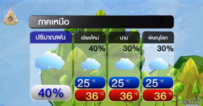 กรมอุตุฯ เผยประเทศไทยมีการกระจายของฝนน้อย 20-40% ของพื้นที่ มากสุดที่ภาคเหนือ ทะเลอันดามันบริเวณที่มีฝนฟ้าคะนองคลื่นสูงมากกว่า 2 เมตร ขอให้ชาวเรือเดินเรือด้วยความระมัดระวัง ส่วน กทม.-ปริมณฑล ฝนฟ้าคะนอง 30%