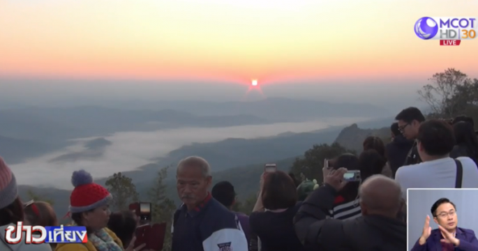 นักท่องเที่ยวล้นดอยเสมอดาว จ.น่าน ท้าลมหนาว รอชมทะเลหมอกและพระอาทิตย์รับวันใหม่ ขณะที่กิ่วแม่ปาน บนดอยอินทนนท์ จ.เชียงใหม่ อุณหภูมิแค่ 1 องศาฯ เกิดปรากฏการณ์น้ำค้างแข็งตามยอดหญ้าติดต่อกัน
