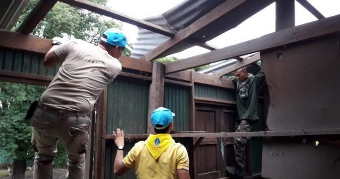 กระบี่ 4 ส.ค.- สพป.กระบี่ ห่วงความเดือดร้อนครอบครัวนักเรียนที่อำเภอเกาะลันตาถูกพายุพัดบ้านพังทั้งหลัง 3 ครัวเรือน เร่งลงพื้นที่ช่วยเหลือเยียวยา นายอดิศร แก้วเซ่ง รองผู้อำนวยการสำนักงานเขตพื้นที่การศึกษาประถมศึกษา (สพป.) กระบี่ ได้รับมอบหมายจาก ผอ.สพป.กระบี่ นำชุดเฉพาะกิจคุ้มครองและช่วยเหลือนักเรียน (ฉก.ชน.) สพป.กระบี่ ลงพื้นที่ อ.เกาะลันตา เพื่อให้การช่วยเหลือ 3 ครอบครัวของนักเรียนโรงเรียนบ้านทุ่งวิทยพัฒน์ ได้รับผลกระทบจากฝนฟ้าคะนองและลมกระโชกแรงเมื่อคืนวันที่ 2 ส.ค.ที่ผ่านมา พร้อมกันนี้ได้นำเครื่องอุปโภคบริโภค รวมทั้งชุดนักเรียน เครื่องนอน และเงินช่วยเหลือเบื้องต้น นางฐิตาภา เหมรา ผู้อำนวยการโรงเรียนบ้านทุ่งวิทยพัฒน์ รายงานว่า เหตุการณ์ดังกล่าวทำให้บ้านเรือนของนักเรียน 3 ราย เสียหายอย่างหนัก และตั้งอยู่ใกล้ชายฝั่ง โดยแรงลมได้พัดหอบหลังคาหายไปทั้งหลัง บางหลังทรุดลงทะเลพร้อมข้าวของเครื่องใช้.-สำนักข่าวไทย