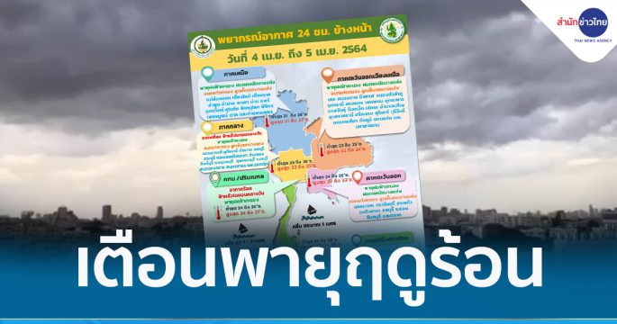 กรมอุตุนิยมวิทยา เตือนไทยตอนบนระวังพายุฤดูร้อน ลมแรง ลูกเห็บตก ส่วนกรุงเทพฯ และปริมณฑล อากาศร้อน ฝนตกร้อยละ 30