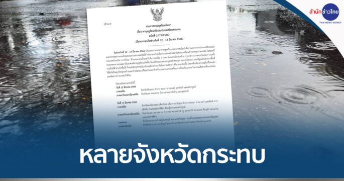 กรมอุตุฯ ออกประกาศเตือนพายุฤดูร้อนบริเวณไทยตอนบน ฉบับ 2 เผยจังหวัดได้รับผลกระทบในช่วงวันที่ 12-14 มี.ค.66