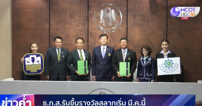 ธนาคารเพื่อการเกษตรและสหกรณ์การเกษตร (ธ.ก.ส.) จับมือสำนักงานสลากกินแบ่งรัฐบาล เป็นตัวแทนรับขึ้นรางวัลสลากฯ ทุกรางวัล ยกเว้นรางวัลที่ 1 คิดค่าธรรมเนียมเพียงร้อยละ 1 เริ่มมีนาคมนี้ ที่ ธ.ก.ส. ทุกสาขาทั่วประเทศ