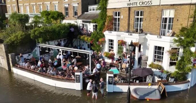 สถานการณ์น้ำท่วมไม่ได้มีแต่ด้านลบเสมอไป เพราะที่กรุงลอนดอนของอังกฤษมีผับแห่งหนึ่งใช้โอกาสในช่วงที่น้ำกำลังท่วมมาเป็นจุดขาย
