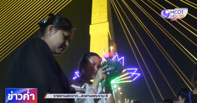 บรรยากาศงาน “ลอยกระทง ชมจันทร์ สะพานพระราม 8” คึกคัก มีประชาชนและนักท่องเที่ยวมาลอยกระทงแม่น้ำเจ้าพระยา ยึดนโยบาย 1 ครอบครัว 1 กระทง ช่วยลดขยะ