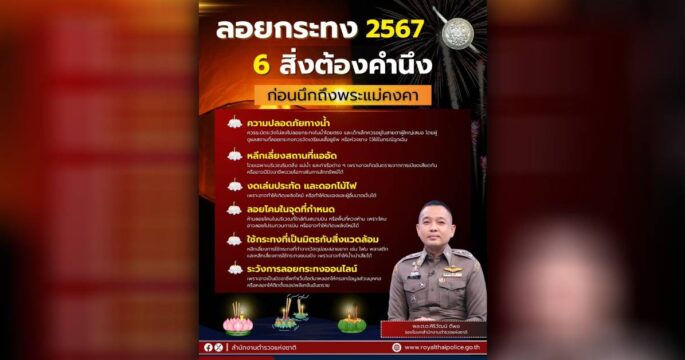 สำนักงานตำรวจแห่งชาติ เตือนลอยกระทงปลอดภัย ต้องใส่ใจส่วนรวม แนะ 6 สิ่งต้องคำนึง ก่อนนึกถึงพระแม่คงคา