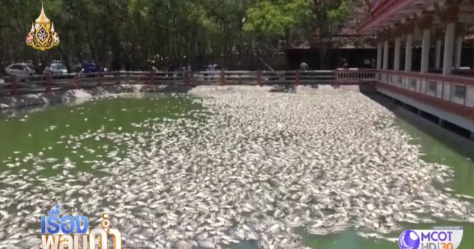 สภาพอากาศที่ร้อนจัด กระทบไม่เฉพาะกับคน ปลาในสระน้ำของวัดหนองคราม อ.ปราณบุรี จ.ประจวบคีรีขันธ์ ก็ลอยตายเป็นแพ