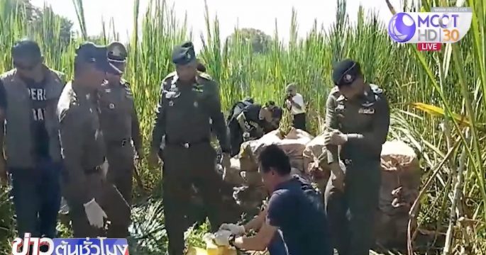 ตำรวจภูธรเชียงราย เข้าตรวจยึดยาบ้าจำนวนประมาณ 10 ล้านเม็ด ที่ขบวนการค้ายานำมาทิ้งไว้ในแปลงหญ้า ก่อนชิงหลบหนีไป