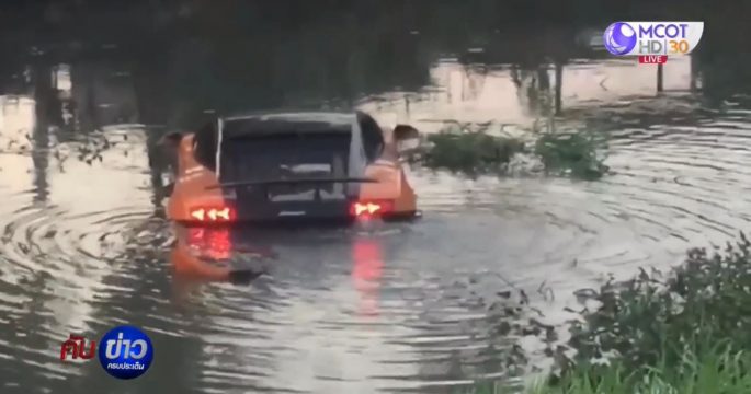 ลัมโบร์กินี เจอรถตัดหน้าหักหลบตกคลอง5 ปทุมธานี เกือบจมทั้งคัน ส่วนคนขับเจ็บเล็กน้อย