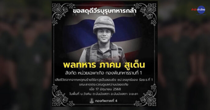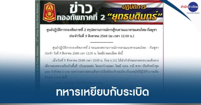โคราช 28 ส.ค. – “แม่พลทหารอดิศร” เศร้า ลูกเหยียบทุ่นระเบิดสูญเสียขา แต่ภูมิใจทำหน้าที่ปกป้องอธิปไตย เผยลางบอกเหตุ ลูกทำชายผ้าถุงแม่ที่พกติดตัวหล่นหาย ขณะลาดตระเวน ที่บ้าน ต.ทุ่งสว่าง อ.ประทาย จ.นครราชสีมา ของพลทหารอดิศร ป้อมกลาง หรือโก้ อายุ 22 ปี ที่เหยียบกับระเบิดขณะปฏิบัติหน้าที่ในพื้นที่ปราสาทตาควาย ได้รับบาดเจ็บขาขวาท่อนล่างขาด มีญาติพี่น้องมาให้กำลังใจพ่อแม่ของพลทหารอดิศร เป็นจำนวนมาก นางเสาวลักษณ์ แม่ของพลทหารอดิศร เล่าด้วยน้ำตานองหน้าว่า ตนมีลูกชาย 2 คน พลทหารอดิศร เป็นลูกชายคนเล็ก ลูกจับใบแดงและเข้ารับราชการเมื่อเดือนพฤศจิกายน 2567 ก่อนไปปฏิบัติหน้าที่ที่ชายแดน จ.สุรินทร์ โดยก่อนไปตนได้ตัดชายผ้าถุงให้ลูกชายพกติดตัวไว้ เพื่อเป็นเครื่องยึดเหนี่ยวจิตใจ ให้แคล้วคลาดปลอดภัยในการปฏิบัติหน้าที่ แต่เมื่อประมาณ 3 วันที่ผ่านมา ลูกชายโทรศัพท์มาหาบอกว่าทำชายผ้าถุงแม่หล่นหายขณะออกลาดตระเวน ตนเลยบอกว่าไม่เป็นไรหรอก แม่เป็นกำลังใจให้ลูก ให้ลูกเข้มแข็งนะ จนกระทั่งเมื่อวาน (27 ส.ค.) ได้รับแจ้งข่าวว่าลูกเหยียบกับระเบิด ทุกคนในครอบครัวตกใจมาก แต่ปลื้มใจที่ลูกชายทำหน้าที่ทหารได้อย่างเต็มความสามารถ ชาวบ้านยันไม่เชื่อใจกัมพูชา จะทำตามข้อตกลง […]