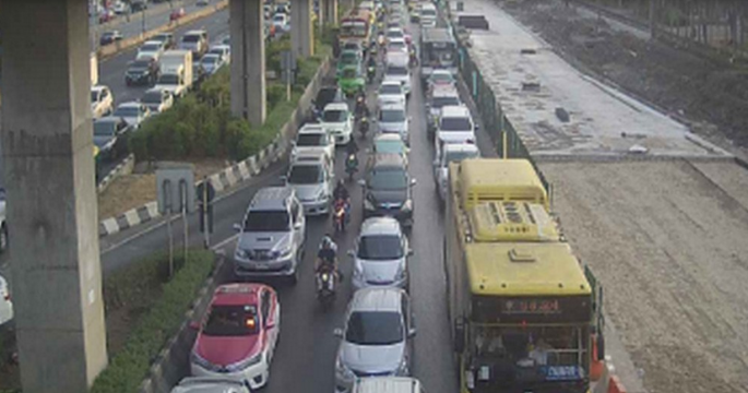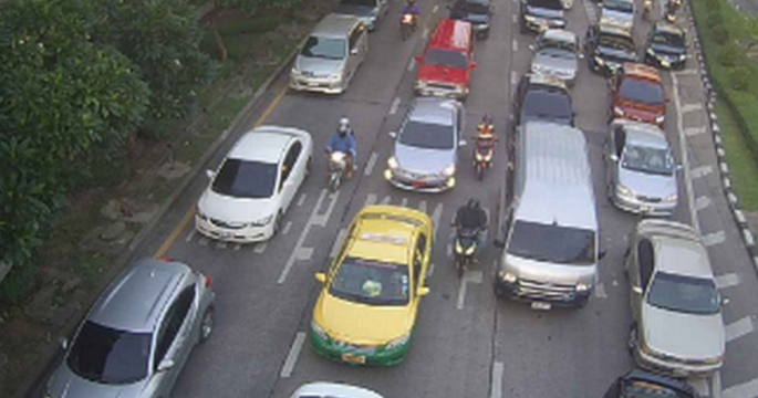 การจราจรเช้าวันศุกร์ ถนนดินแดง จากแยกใต้ทางด่วนดินแดง มุ่งหน้าไปอนุสาวรีย์ชัยสมรภูมิ รถมาก เคลื่อนตัวช้า