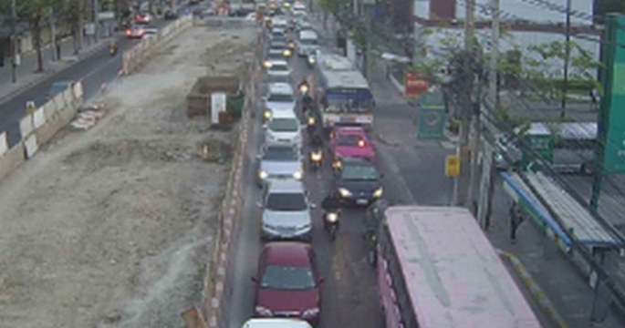 ถนนวิภาวดี-รังสิต ขาเข้าจากแยกสุทธิสาร เข้าใต้ด่วนดินแดง รถมาก ท้ายสะสมหน้าวิทยาลัยป้องกันราชอาณาจักร