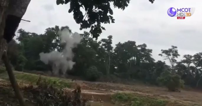 เจ้าหน้าที่ EOD ทำลายระเบิดชนิด M26 ที่เก็บกู้จากบริเวณลานจอดรถข้างอนุสาวรีย์พระยารัษฎานุประดิษฐ์ฯ เทศบาลนครตรัง ซึ่งรถแบ็กโฮขุดพบเมื่อคืนนี้ ขณะเกลี่ยพื้นที่เพื่อปรับภูมิทัศน์ โดยแม้จะเป็นระเบิดเก่า แต่ยังมีดินระเบิดอยู่ข้างใน เชื่อน่าจะถูกฝังไว้นานแล้ว