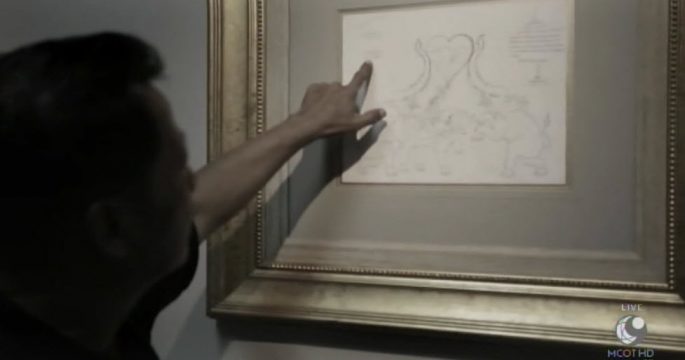 ลายพระหัตถ์พระบาทสมเด็จพระปรมินทรมหาภูมิพลอดุลยเดช ทรงมีพระราชวินิจฉัยรูปช้าง ในหอศิลป์วัดร่องขุ่น จ.เชียงราย