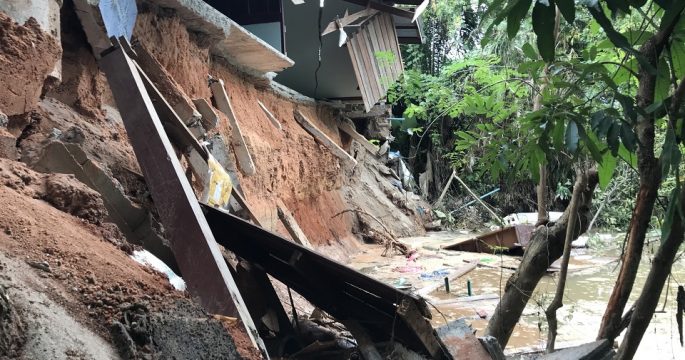 หนองคายน้ำโขงหนุนลำน้ำสาขาเซาะบ้านพัง